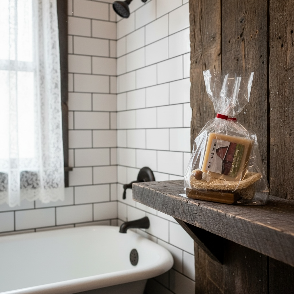 Pick up one of our bath bundles complete with two bars of goat milk soap, a saver pad, a wood bar holder, and a soap bag, which is a great way to clean and exfoliate your skin with goat milk soap! They make a great, hassle-free gift. E-mail us at info@badcreekbarns.com with the "in stock" scents that you would like added to your bath bundle. Include your name and order number in the email. A single bar is approximately 4-5 oz. Remember, each bar is handcrafted here at Bad Creek Barns, so weight may vary slightly.